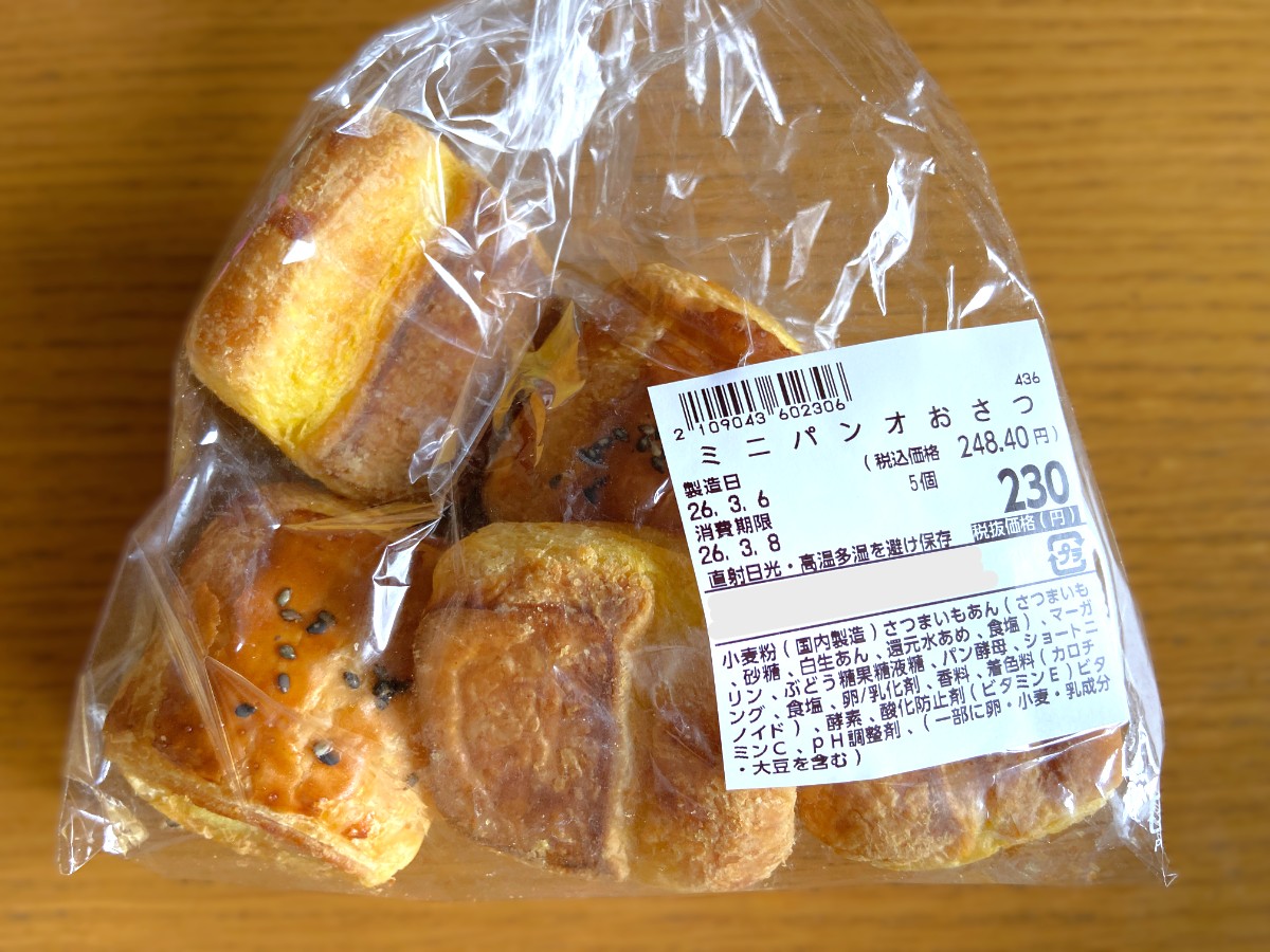 今回購入したおさつパンはふわっとしたデニッシュ生地にほっこり甘くておいしいおさつあんが入っていて、子供から大人まで皆で楽しめるやさしい味わいのパンでした。トースターで軽く焼いてから食べると、生地がサクッとしてよりおいしく食べることができますよ。