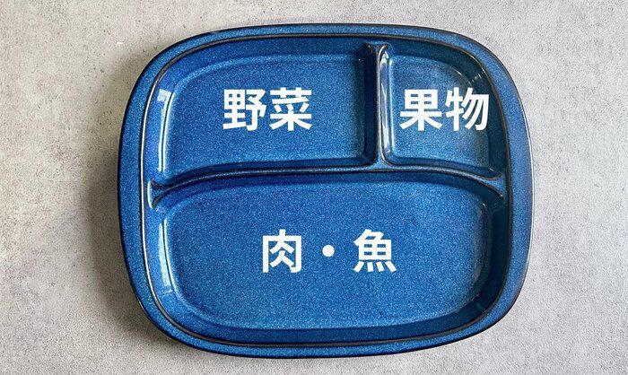 3区切りワンプレートは、見た目こそシンプルでも「迷わない構造」そのもの。3つの区切りを「野菜・肉魚・果物」のゾーンに決めておくだけで、迷いがなくなり、栄養も自然に整います。