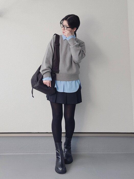 モノトーンコーディネートが好きな人は「スムースコットンクルーネックセーター」(3,990円)がおすすめ。カラーアイテムを取り入れたいけれど、うまく合わせられるか心配…そんな人は、「スムースコットンクルーネックセーター」のグレーとカラーシャツをレイヤードして、カラーをチラ見せさせるとチャレンジしやすいですよ。レイヤードすることでファッション上級者の印象もあたえられちゃう!