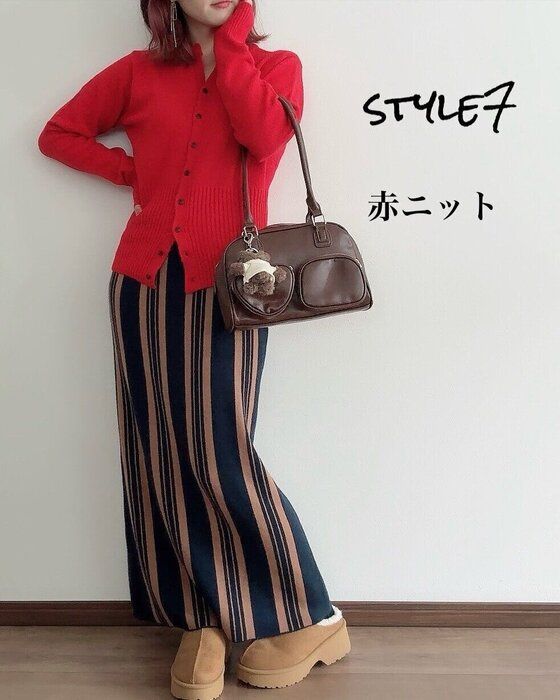 「meg*ストライプJQナロー」(1,969円)は、おしゃれなストライプ柄のナロースカート。しまむら×ファッションインフルエンサーのコラボアイテムだけあって、おしゃれなだけでなく着回し力、シルエットにもこだわっている1枚です。トレンドのタイトなニットやカーディガンをあわせることでより一層『Iライン』が強調された着やせコーデが完成。スタイルアップして見せたい時は大活躍するおすすめのナロースカートです。