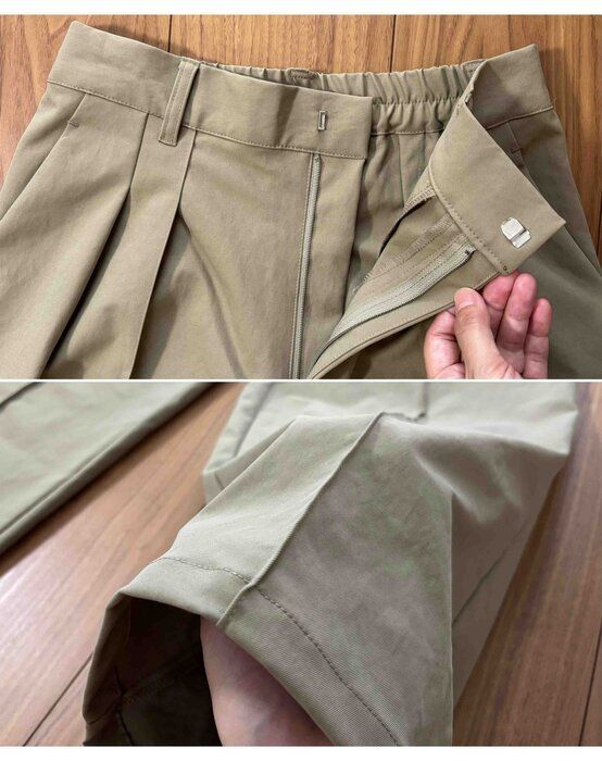 センタープレスは縫われているので折り目が取れる心配もなく、綺麗めに見える生地なのにシワになりにくいのが特徴です。