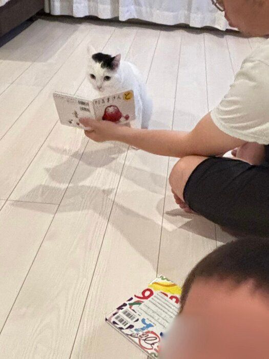 まつもとたけるさん(@takeru0321neko)の投稿が、Xで話題になっています。投稿したのは、夫が愛猫たけるくんになぜか絵本を読み聞かせしていたときの写真。投稿には、「しっかり見てるにゃん」の声と1.4万件のいいねが集まりました。