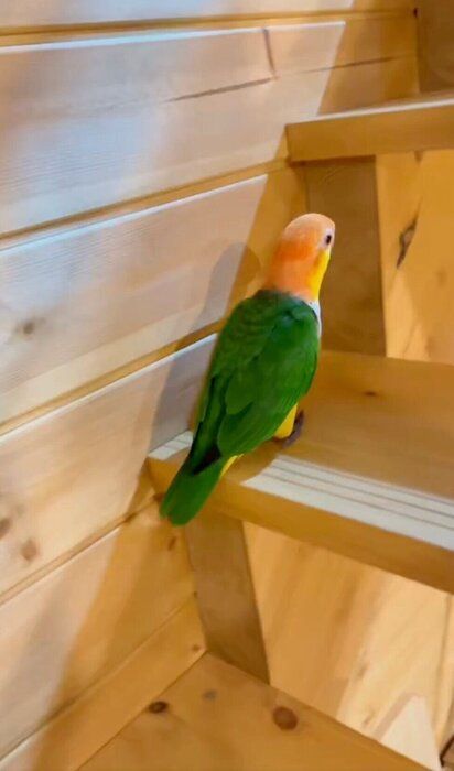 投稿したのは、シロハラインコのレオちゃんが階段を上るときの動画。