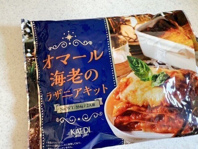 こちらです。カルディオリジナル ラザニアキット オマール海老 2人分 753円