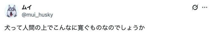 ムイさん(@mui_husky)の投稿に多くの注目が集まっています。投稿したのは、飼い主さんがソファでくつろいでいたときのこと。飼い主さんの上で甘える愛犬ムイちゃんの姿が、まるで赤ちゃんのようだと話題になり、8.1万いいねが寄せられました。