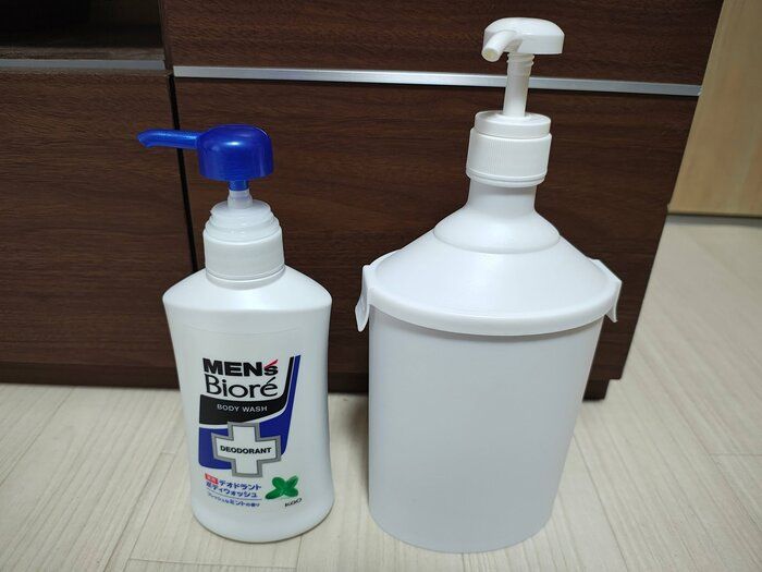 シャンプーやリンス、ボディソープの詰め替えってめんどうですよね。不器用な筆者、気をつけているつもりでもパウチを持ちながらボトルに注ぐときによくこぼしてしまうんです。簡単に詰め替える方法はないかな?と思っていたときに見つけたのが、ダイソーで発売されている「そのまんまポンプ」。