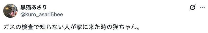 黒猫あさりさん(@kuro_asari5bee)が投稿したのは、ガス検査のため専門家が訪れたときのこと。怖がって隠れてしまった愛猫・あさりちゃんでしたが、飼い主さんにだけ見せたある行動が「かわいすぎる」と、25万人が悶絶し話題になりました。