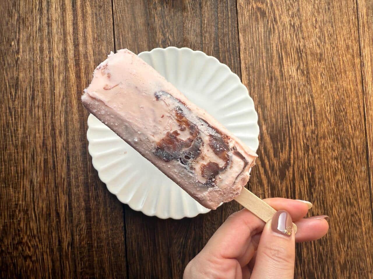 ひと口かじると、バキバキッとしたあの快感とともに、あまおう苺の甘酸っぱい香りが鼻に抜けて……。もう、たまりません! ベースのアイスはリッチなミルク感があって、苺の酸味と濃厚なチョコのバランスが絶妙なんです。